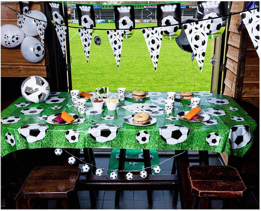 Mit der Partydeko-Serie „Fußball“ wird jede Feier zum Volltreffer. Die schwarz-weiße Geburtstagsdekoration ist mit klassischen Fußbällen bedruckt u...