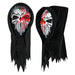 Die Maske zeigt ein bleiches Totenschädel-Gesicht mit tiefen Augenhöhlen, hervortretenden Knochenstrukturen und realistisch wirkenden blutigen Details, die aussehen, als käme der Tod direkt vom Schlachtfeld. Der Clou: Die fest angebrachte schwarze Kapuze aus weichem Stoff umrahmt das Gesicht und sorgt für einen nahtlosen Übergang zwischen Maske und Kostüm. Haare, Nacken und Schultern verschwinden unter dem dunklen Stoff, wodurch der Sensemann-Look besonders düster und überzeugend wirkt.