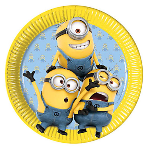 Machen Sie den Kindergeburtstag Ihres Kindes unvergesslich mit unseren Minions-Papptellern! Dieses Set umfasst acht runde Pappteller mit einem Durc...