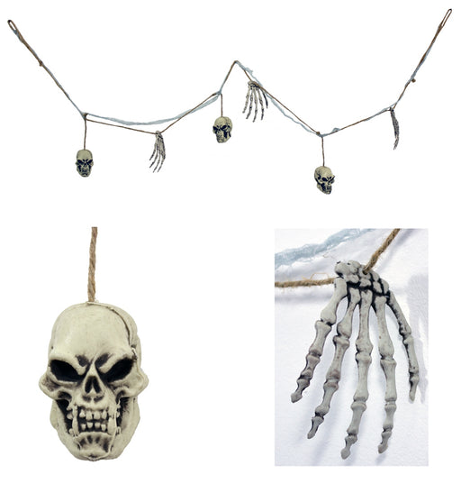 Vollständige Details anzeigenXXL Knochen und Totenkopf Girlande - 180 cm | Gruselige Party Halloween Dekoration