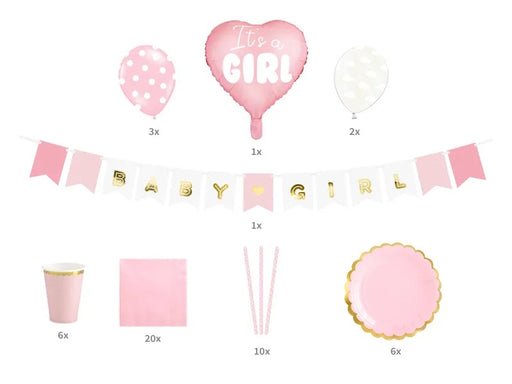 Vollständige Details anzeigenParty Dekorationsset "It's a girl" 49-tlg. | Rosa Dekoration für Babyparty