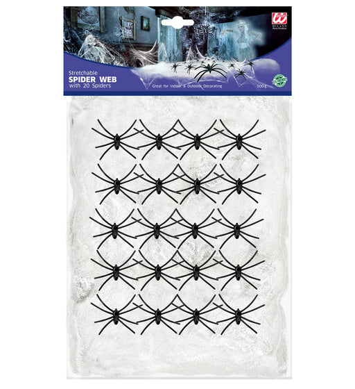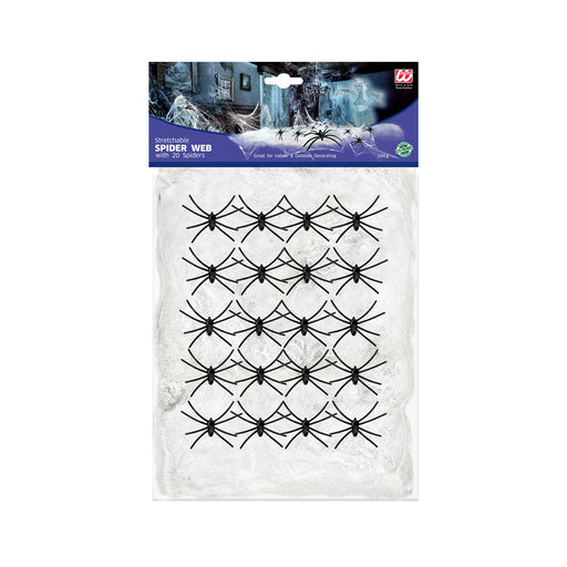 Vollständige Details anzeigenWeißes Halloween Spinnennetz | 500g mit 20 Spinnen Dekoration