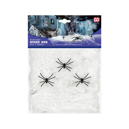Vollständige Details anzeigenWeißes Spinnennetz 50g mit 3 Spinnen | Halloween Dekoration