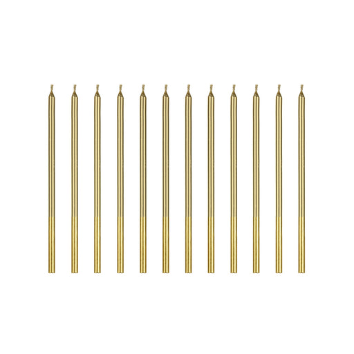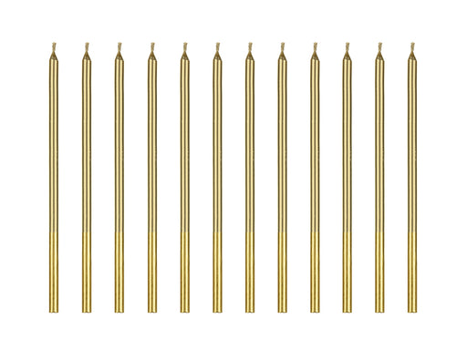 Glatte Geburtstagskerzen in Gold, ca. 14 cm hoch. Das Set enthält 12 Kerzen.