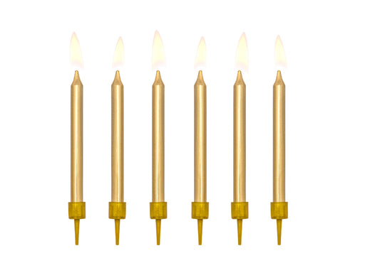 Glatte Geburtstagskerzen in Gold-Metallic, ca. 6 cm groß, Set mit 6 Kerzen und 6 Halter.