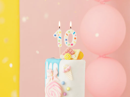 Die Geburtstagskerze in Ziffernform „0“ in Weiß Konfetti ist eine stilvolle und moderne Ergänzung für jede Geburtstagstorte. Mit einer Höhe von 5,5...