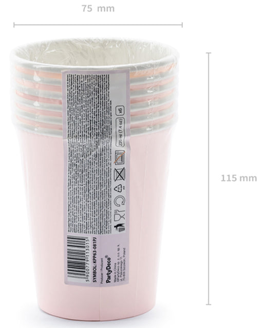 6 Pappbecher "Happy B'day" 220 ml | Hell-Puderrosa