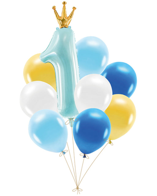 Ballonset Erster Geburtstag in Blau, das Set enthält Latexballons (8 Stück) und einen Folienballon Nummer 1. Durchmesser der Latexballons ca. 30 cm...