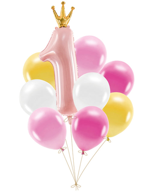 Ballonset Erster Geburtstag in Rosa, das Set enthält Latexballons (8 Stück) und einen Folienballon Nummer 1. Durchmesser der Latexballons ca. 30 cm...