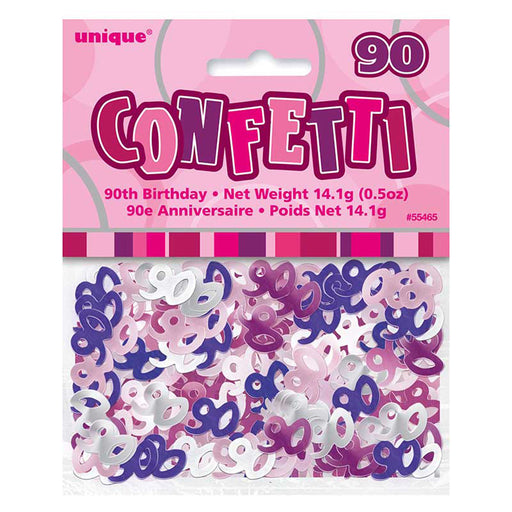 Metallisches Konfetti, geprägt in Form der Zahl 90 in glänzendem Pink, Rosa & Silber . Perfekt als Pinatafüllung, Deko für den Geburtstagstisch...