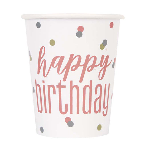Geburtstagsfeiern mit Stil - die Happy Birthday Pappbecher in Roségold von Unique Party Mach deine Geburtstagsparty zum eleganten Highlight! ...
