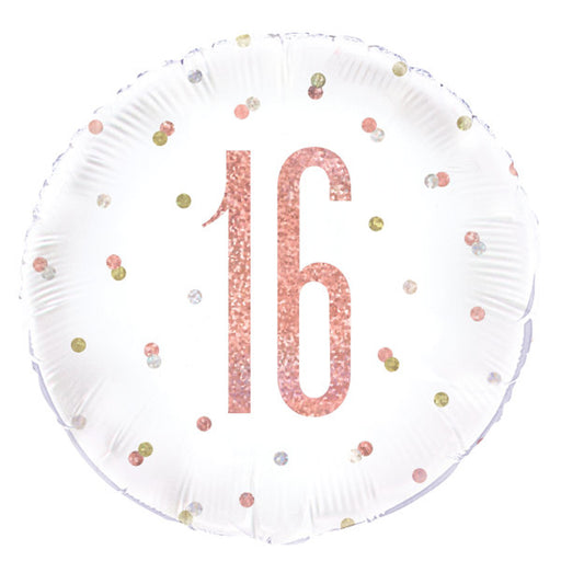 Vollständige Details anzeigenABC18 Folienballon "Happy Birthday #16" Glitz | Ø 45 cm Rosegold