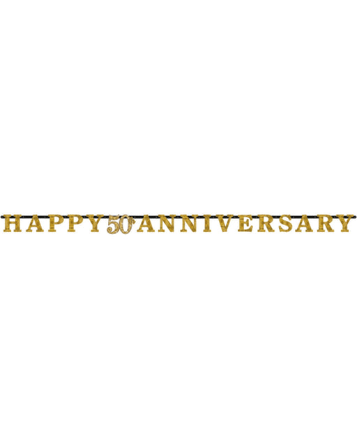 Vollständige Details anzeigen"Happy 50th Anniversary" Buchstaben Girlande Partykette | Gold - 300 cm