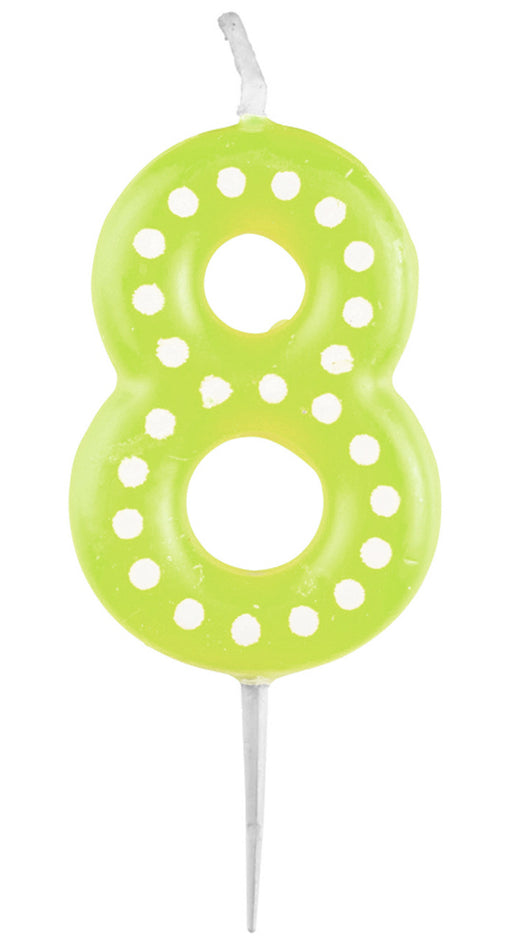 Vollständige Details anzeigenZahlenkerze mit Punkten 6,5cm | Gr ün # 8