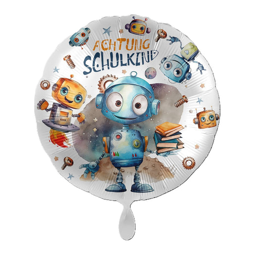 Vollständige Details anzeigenABC18 Folienballon Ø 43cm "Achtung Schulkind Roboter"