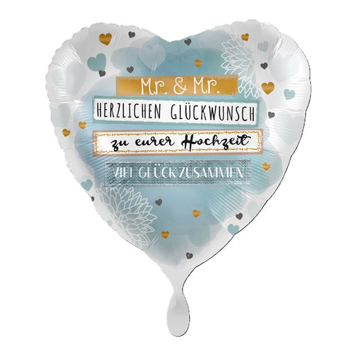 Vollständige Details anzeigenABC18 Herz Folienballon Ø 43cm "Mr. & Mr. Glückwunsch"