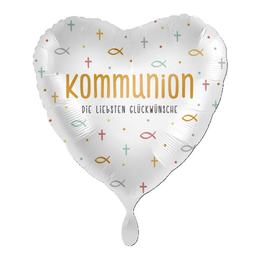 Vollständige Details anzeigenABC18 Herz Folienballon Ø 43cm "Kommunion - Glückwünsche"