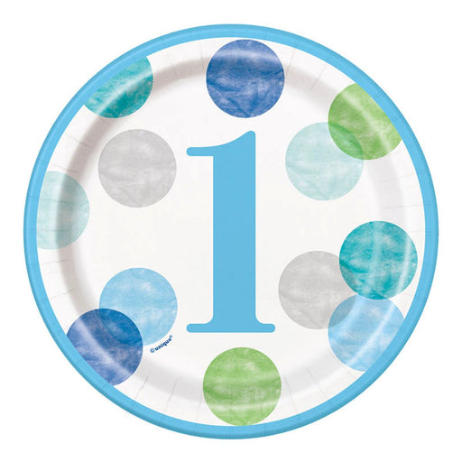 Pappteller "Dots Blau 1st Birthday" | Ø18cm/8Stk.