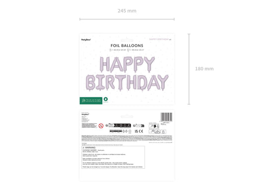Diese zauberhafte "HAPPY BIRTHDAY"-Ballon-Girlande in Flieder bringt stilvolle Leichtigkeit in jede Partydekoration. Die eleganten Buchstaben aus m...