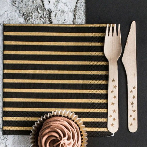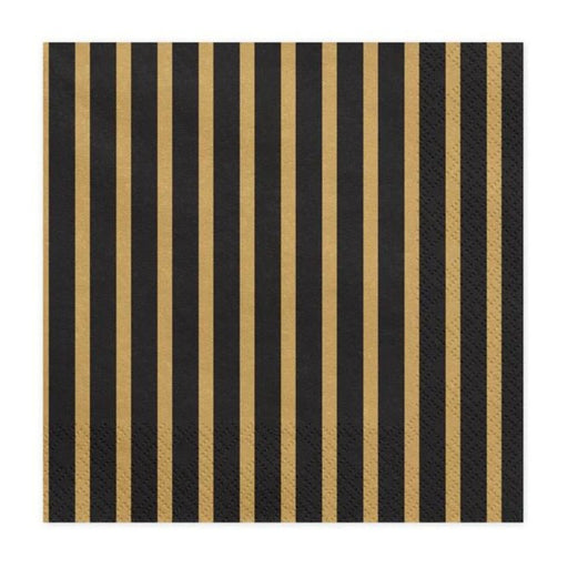 Servietten Gestreift Schwarz/Gold | 33x33 cm/20 St.