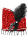 Die schöne Handtasche ist mit Pailletten, Federn, Schmucksteinen und Perlen verziert. Das Täschchen hat ein langes Stoffband und ein kurzes Perlenband und lässt sich prima über der Schulter tragen.